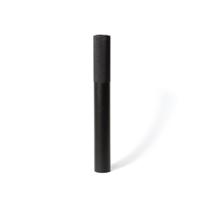 The Stribog Muzzle Extension was designed to be used in conjunction with the KDG SRX models; Stribog Receiver Extensions. These muzzle extensions thread onto the Stribog barrel, extending the end of the muzzle an extra 3 to 6 inches. This device is important for directing the blast of the muzzle forward of the Stribog Receiver Extension, protecting the users’ arms and hands during weapon firing and manipulations. Both the SMX3 and SMX6 thread onto the end of the muzzle using standard 1/2×28 threads and are constructed from a mild C1018 steel so that it can easily be welded, if required, to keep in compliance with local and federal firearms laws and regulations (BOO!). Bolstering a knurled forend for a slip free grip to aid in installation and removal, confirming securement and for a pleasingly aesthetic appearance. *** Is a stand-alone muzzle device not to be used, or modified to be used, with another such muzzle device *** The Stribog Muzzle Extension 6 inch (SMX6) can be used with both Stribog Receiver Extensions 3 and 6 inch models (SRX3 & SRX6)