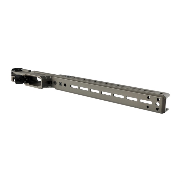 AERO PRECISION SOLUS COMPETITION CHASSIS The Solus Competition Chassis was designed to create the most precise and repeatable rifle to body connection. Modularity is another critical component of the Solus chassis a high focus on general ergonomics and adjustability ensures chassis fitment goes smoothly. Integrating industry-standard attachments like M-LOK and Arca Swiss allows a true custom experience no matter the intended use. Chassis Center Section Features: Remington 700 short action footprint V-Block bedding surfaces to ensure consistent lockup among different manufacture actions. Compatibility with AICS and AIAIW detachable box magazines Ambidextrous magazine catch Adjustable magazine catch (to accommodate for variances in magazine tolerances) Adjustable thumb rest Compatible with tangless AR15 pistol grips. Machined from custom 7075-T6 aluminum forgings Forend Features: Arca and M-LOK compatible forend with M-LOK slots at the 3,6 and 9 o'clock positions 6 QD sling sockets Compatible with Aero Precision's optional night vision bridge and bipod spigot Can accommodate up to 1.25" barrel diameters Stock Features: 7-position adjustable length of pull Variable position adjustable cheek comb Adjustable cant recoil pad 5 QD sling sockets Included bag rider