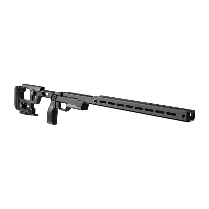 El AERO PRECISION SOLUS COMPETITION CHASSIS ha sido diseñado para crear la conexión más precisa y repetible entre el rifle y el cuerpo. La modularidad es un componente crítico del chasis Solus, y su enfoque en la ergonomía general y la ajustabilidad asegura que el ajuste del chasis se realice sin problemas.