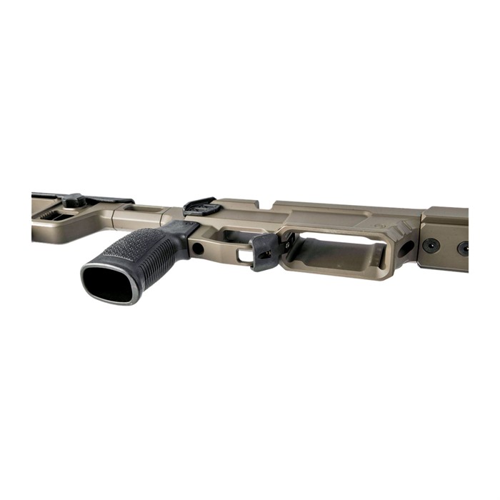 AERO PRECISION SOLUS COMPETITION CHASSIS The Solus Competition Chassis was designed to create the most precise and repeatable rifle to body connection. Modularity is another critical component of the Solus chassis a high focus on general ergonomics and adjustability ensures chassis fitment goes smoothly. Integrating industry-standard attachments like M-LOK and Arca Swiss allows a true custom experience no matter the intended use. Chassis Center Section Features: Remington 700 short action footprint V-Block bedding surfaces to ensure consistent lockup among different manufacture actions. Compatibility with AICS and AIAIW detachable box magazines Ambidextrous magazine catch Adjustable magazine catch (to accommodate for variances in magazine tolerances) Adjustable thumb rest Compatible with tangless AR15 pistol grips. Machined from custom 7075-T6 aluminum forgings Forend Features: Arca and M-LOK compatible forend with M-LOK slots at the 3,6 and 9 o'clock positions 6 QD sling sockets Compatible with Aero Precision's optional night vision bridge and bipod spigot Can accommodate up to 1.25" barrel diameters Stock Features: 7-position adjustable length of pull Variable position adjustable cheek comb Adjustable cant recoil pad 5 QD sling sockets Included bag rider