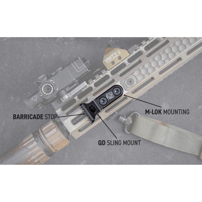 El Presscheck Barricade Stop de Sons Of Liberty Gunworks es un accesorio M-LOK de alta precisión que cumple dos funciones en el mismo espacio: sirve como un Barricade Stop y un QD Sling Mount.