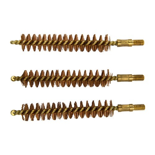 050806032378 Si tú o tu cliente tienen una de esas armas que clavan clavos o derriban pájaros cada vez, el ligero costo adicional de nuestros cepillos de la Línea Especial vale la pena para eliminar cualquier posibilidad de que el vástago del cepillo de limpieza raye ese cañón tan importante. El vástago de latón es de una sola pieza, en bucle y enrollado (no dos, retorcidas juntas y cortadas). El acoplamiento es de latón sin rayones. Las cerdas son las mejores, de alambre de bronce fosforado para una larga vida útil y una limpieza a fondo. ESPECIFICACIONES: Cerdas: Bronce fosforado. Vástago: Latón, en bucle y enrollado. Longitud total: 3.27” (8.3cm) Roscas de 20 Calibres: 5-40 Macho Otras roscas de Calibre: 8-32 Macho NOTA: El cepillo de cañón de 22 Calibres con rosca 8-36 solo se adapta a las varillas de limpieza militares M16.Plazo de entrega de aproximadamente 14-21 días.