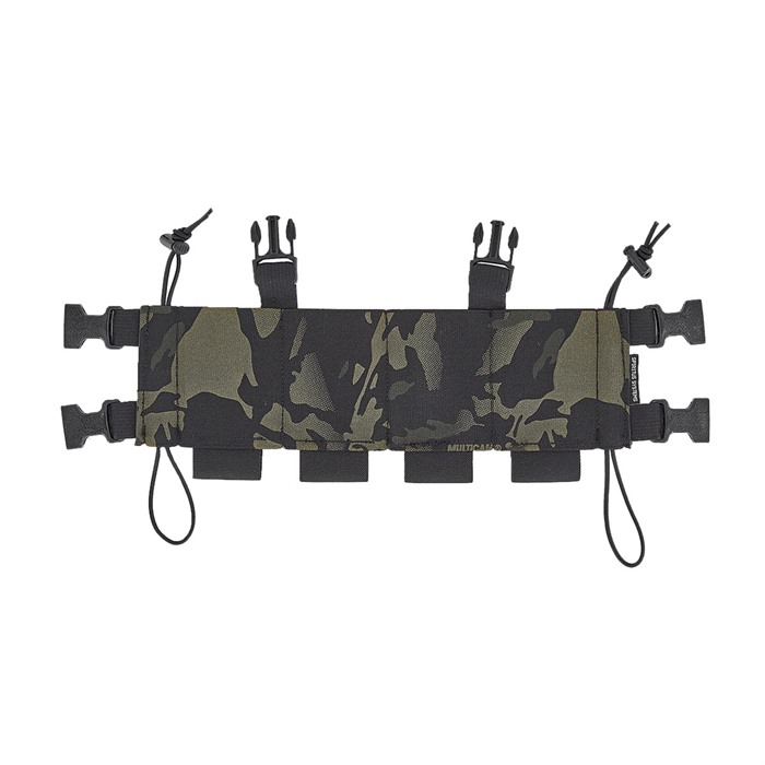 Este Chest Rig está construido completamente de material elástico, lo que le permite adaptarse y retener objetos de formas extrañas como granadas de humo, explosivos de destello, cargadores y torniquetes. El Bank Robber viene de serie con 4 celdas elásticas y dos bungees de retención diseñados para sujetar torniquetes u otros objetos similares.