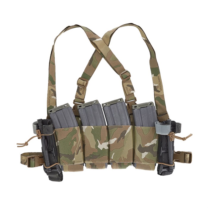 El Bank Robber Chest Rig es un sistema de carga de pecho minimalista y de bajo perfil. Está diseñado para funcionar con sus Skinny Straps o Fat Straps. También requiere un Bacl Strap para funcionar correctamente. Las correas de hombro y de espalda NO están incluidas y deben comprarse por separado. El Chest Rig está construido completamente de material elástico. Esto le permite adaptarse y retener objetos de formas extrañas, como granadas de humo, flash bangs, cargadores y torniquetes. El Bank Robber viene estándar con 4 celdas elásticas y dos bungees de retención diseñados para sostener torniquetes u otros artículos similares. Debido a la naturaleza minimalista del Bank Robber, no viene con Velcro para montar cargas secundarias o para acoplarlo a un portaplacas.Eliminado del programa