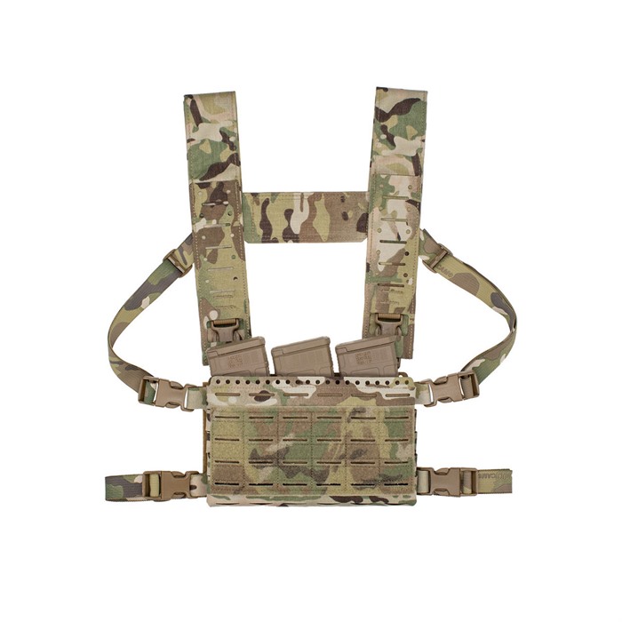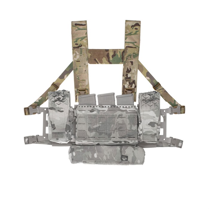 El Fat Strap MK4 es una solución universal de arnés en H, diseñada para funcionar con el Micro Fight Chassis, 34 A Split Chest Rig y el Thing 2 expansion chassis. Este diseño de perfil reducido ahora incluye un panel de superposición actualizado de Squadron con más puntos de montaje horizontales para PTTs y otros equipos, así como agujeros para cordones de choque para montar otros accesorios.