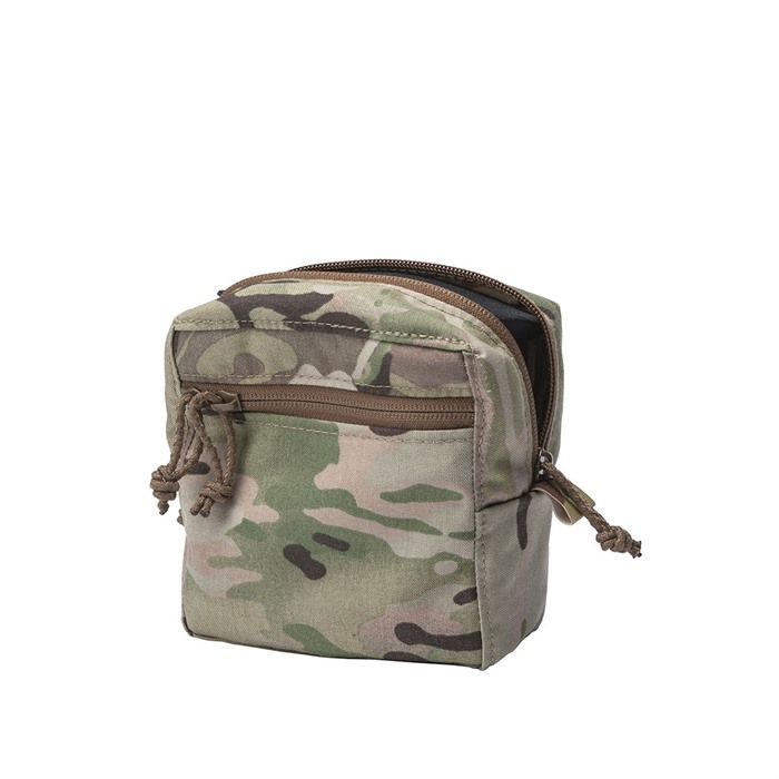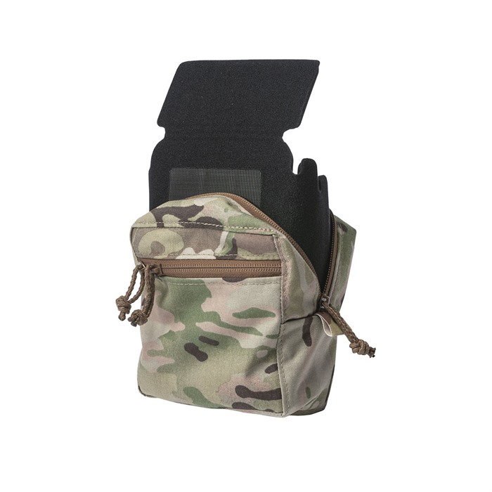 Las solapas del inserto acolchado se pliegan para formar una caja protectora que puede acomodar binoculares de visión nocturna u otros objetos sensibles. Una vez instalado, el inserto no cubre el 6to lado (interior) del pouch, lo que maximiza la capacidad de almacenamiento interna. El diseño se apoya en el torso del usuario para proporcionar la 6ta pared de protección para el artículo.