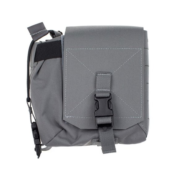 - Compartimento Principal: Cuenta con una tapa superior con doble retención (cierre de gancho y bucle y hebilla Fastex) y está diseñado para sostener una batería de radio de alta capacidad (como la BB-2590), 8x cargadores STANAG de 5.56 apilados paralelos al cuerpo, enlaces de 5.56, o cualquier otro artículo de tamaño similar.