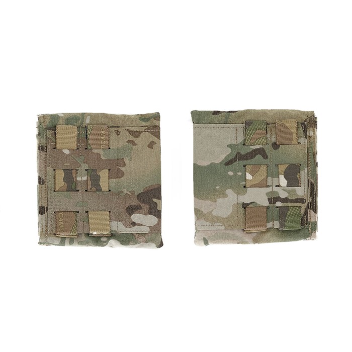 Las Side Armor Bags están diseñadas con materiales elásticos para acomodar placas de armadura dura de 6” x 6” de hasta 1” de grosor en una configuración independiente. El uso de inserciones de armadura blanda requiere la adición de nuestras tapas de Side Armor Bag, que pueden acomodar inserciones rectangulares de armadura blanda de 5" x 7" a 5" x 14".