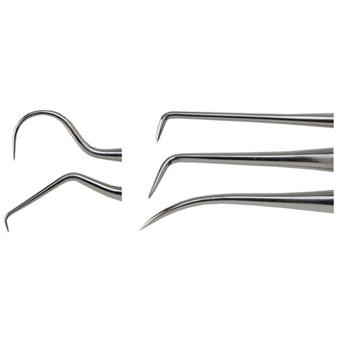 Los STAINLESS STEEL DENTAL EXPLORERS de BROWNELLS son herramientas versátiles que no pueden faltar en tu kit de herramientas. Perfectos para una variedad de usos, estos exploradores son ideales para adjuntar resortes, posicionar piezas y eliminar residuos.