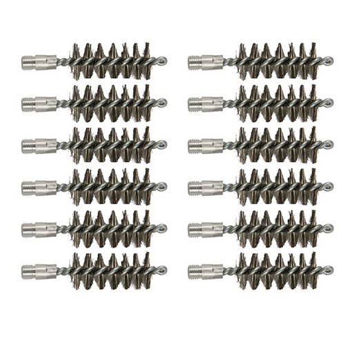 050806028807 Dado que se utilizan casi tantas cepillos de cañón en el taller como las que se venden, hemos empaquetado estos cepillos de calidad superior, hechos a medida, en paquetes a granel para que sean más convenientes y menos costosos. Cepillo de Cañón de Acero Inoxidable - Para cañones gravemente ensuciados, obstruidos o oxidados, la acción de limpieza agresiva de un cepillo de acero inoxidable puede ayudar a dejarlos limpios. Sin embargo, la acción agresiva acelera el desgaste, y el uso regular puede acortar la vida del cañón. ESPECIFICACIONES: Cerda: Disponible en acero inoxidable. Mango: Acero, en bucle y enrollado. Longitud total: 3.27" (8.3cm) Roscas: .17 y .20 cal. Roscas 5-40, todas las demás roscas 8-32.Plazo de entrega de aproximadamente 14-21 días.