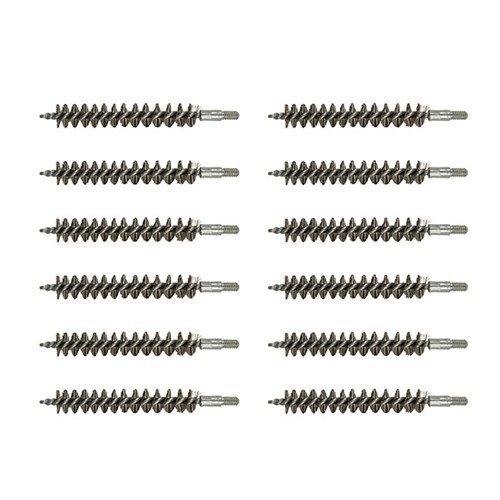 Since darn near as many bore brushes get used in the shop as get sold, we’ve packed these custom-made, top quality brushes in bulk paks to make them more convenient and less expensive. The shank is one-piece, looped and wound (not two, twisted together and chopped off). Stainless Steel Bore Brush - For severely leaded, fouled or rusted bores, the aggressive cleaning action of a stainless steel brush can help get them clean. However, the aggressive action accelerates wear, and regular use can shorten barrel life. SPECS: Bristles: Available in stainless steel. Shank: Steel, looped and wound. Overall length: 3.27" (8.3cm) Threads: .17 and.20 cal. 5-40 threads, all others 8-32 thread.