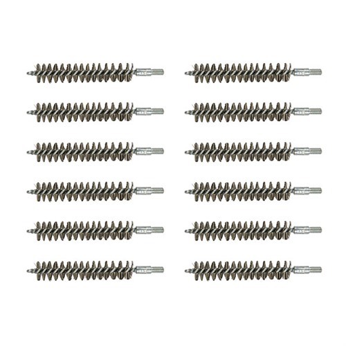 Since darn near as many bore brushes get used in the shop as get sold, we’ve packed these custom-made, top quality brushes in bulk paks to make them more convenient and less expensive. The shank is one-piece, looped and wound (not two, twisted together and chopped off). Stainless Steel Bore Brush - For severely leaded, fouled or rusted bores, the aggressive cleaning action of a stainless steel brush can help get them clean. However, the aggressive action accelerates wear, and regular use can shorten barrel life. SPECS: Bristles: Available in stainless steel. Shank: Steel, looped and wound. Overall length: 3.27" (8.3cm) Threads: .17 and.20 cal. 5-40 threads, all others 8-32 thread.