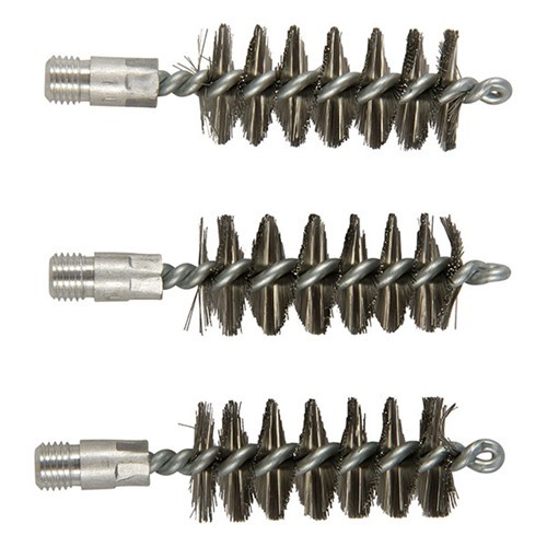 El shank es de una sola pieza, con un lazo y enrollado (no dos, retorcidos juntos y cortados). El Stainless Steel Bore Brush es ideal para cañones severamente contaminados por plomo, fouling o óxido, ya que la acción de limpieza agresiva de un cepillo de acero inoxidable puede ayudar a dejarlos limpios. Sin embargo, esta acción agresiva acelera el desgaste y el uso regular puede acortar la vida útil del cañón.