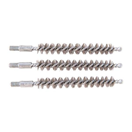 050806028883 Dado que se utilizan casi tantas cepillos de cañón en el taller como las que se venden, hemos empaquetado estos cepillos de calidad superior, hechos a medida, en paquetes a granel para que sean más convenientes y menos costosos. Cepillo de Cañón de Acero Inoxidable - Para cañones gravemente ensuciados, obstruidos o oxidados, la acción de limpieza agresiva de un cepillo de acero inoxidable puede ayudar a dejarlos limpios. Sin embargo, la acción agresiva acelera el desgaste, y el uso regular puede acortar la vida del cañón. ESPECIFICACIONES: Cerda: Disponible en acero inoxidable. Mango: Acero, en bucle y enrollado. Longitud total: 3.27" (8.3cm) Roscas: .17 y .20 cal. Roscas 5-40, todas las demás roscas 8-32.Plazo de entrega de aproximadamente 14-21 días.