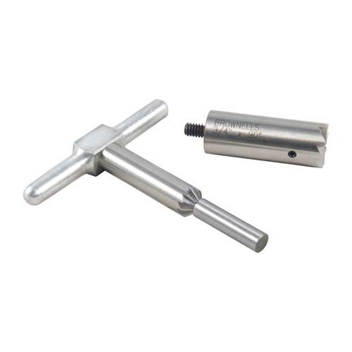 050806017481 El conjunto incluye: un cortador de cara de 90° para escuadrar un cañón después de acortarlo o reparar daños; un cortador de chamfer de 45° para romper los bordes del estriado para una salida limpia de la bala o chamferar la boca del cilindro de un revólver para recargas rápidas; además de un mango que se adapta a cualquiera de los cortadores y un piloto de acero. El piloto intercambiable mantiene el cortador correctamente alineado. Compra pilotos adicionales para usar un cortador en muchos calibres diferentes. Pilotos para otros calibres disponibles por separado.Pedido pendiente, tiempo de entrega aproximado 4-12 semanas desde el almacén de EE. UU.