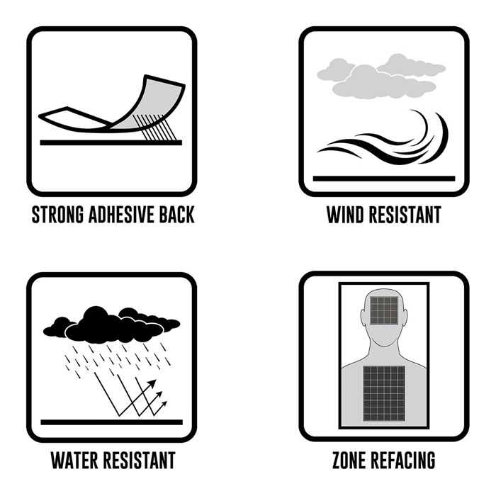 - Material: Papel adhesivo de alta resistencia y resistente a la intemperie