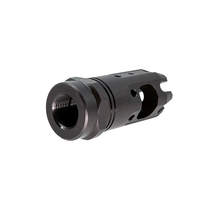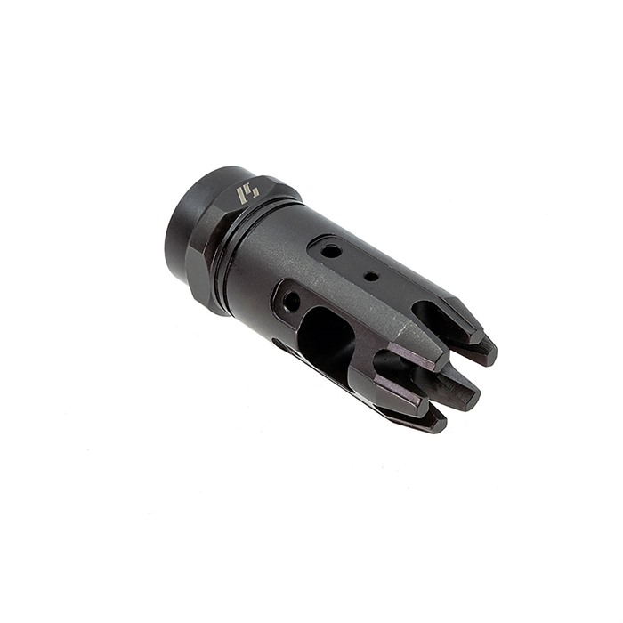 El gran baffle único captura los gases ventilados, produciendo una fuerza neta hacia adelante del tirador que ayuda a mitigar el retroceso. Los puertos trabajan para estabilizar el extremo del cañón para disparos de seguimiento más rápidos, mientras que amortiguan el retroceso sentido por el tirador, manteniendo una experiencia de tiro agradable en general.