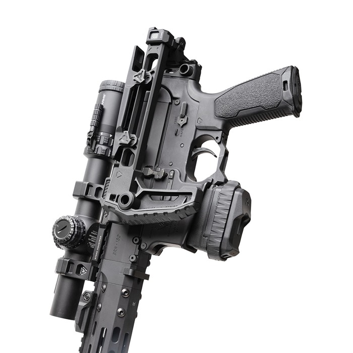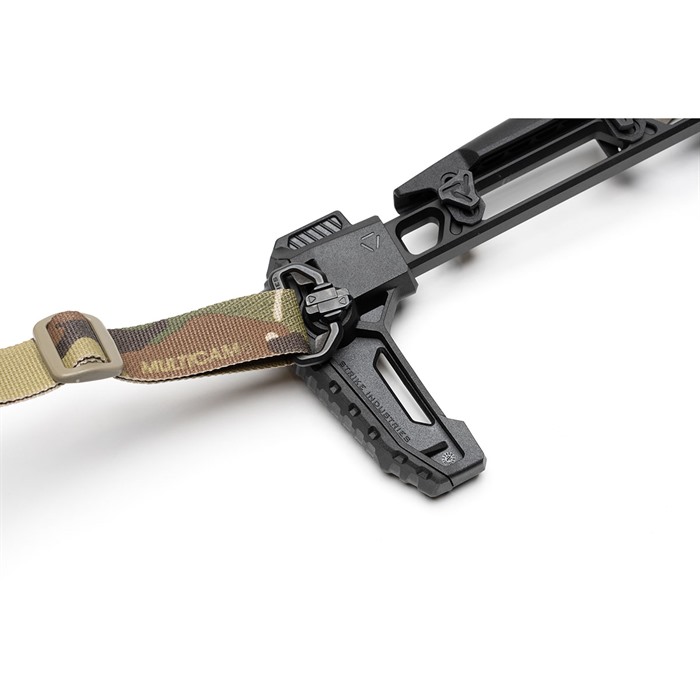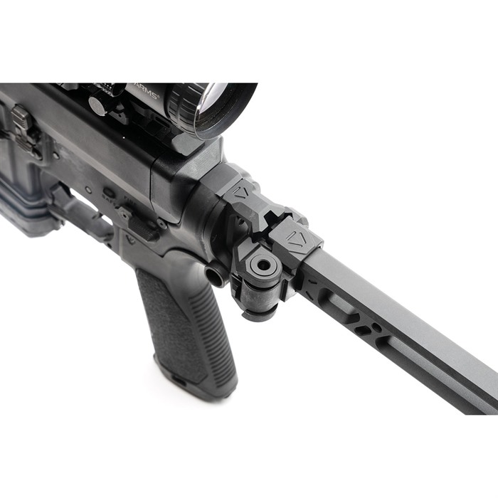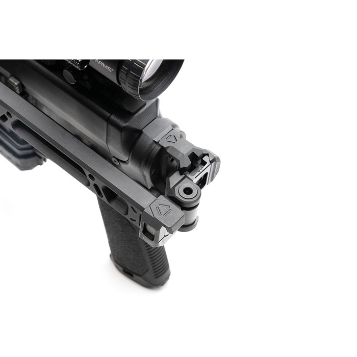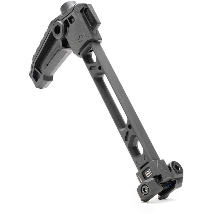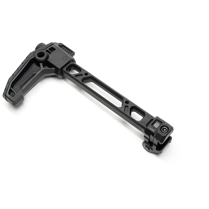 En su posición plegada, el brazo puede ser lanzado de vuelta a la posición extendida para un despliegue rápido, sin riesgo de dañar la bisagra gracias a su nuevo diseño reforzado. En las posiciones de 3 y 9 en punto, hay dos puntos QD ubicados en la pieza final del stock para sujetar tu sling favorito.