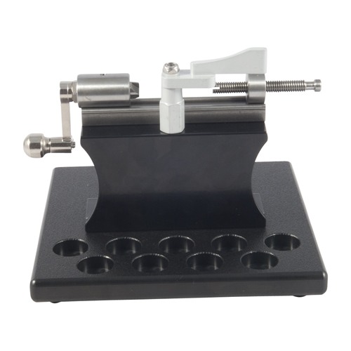 - Inserta el Recortador de Vainas L.E. Wilson en la ranura designada de la plataforma.