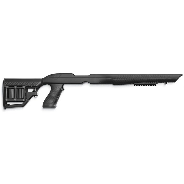 - Longitud de tiro ajustable: Culata tipo M4 ajustable para un ajuste adecuado y un rendimiento mejorado, equipada con compartimentos de almacenamiento ambidiestros para dos cargadores rotativos Ruger adicionales.