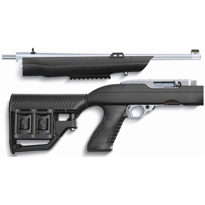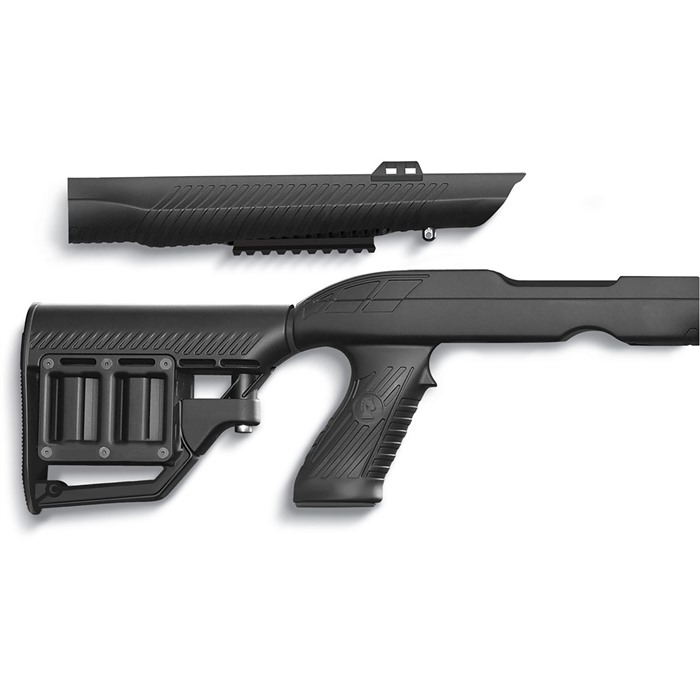 - El butt-stock ajustable te permite personalizar la longitud de tiro para un ajuste adecuado y un rendimiento mejorado, además de contar con compartimentos ambidiestros para dos cargadores rotativos de Ruger (cargadores no incluidos).