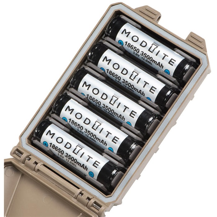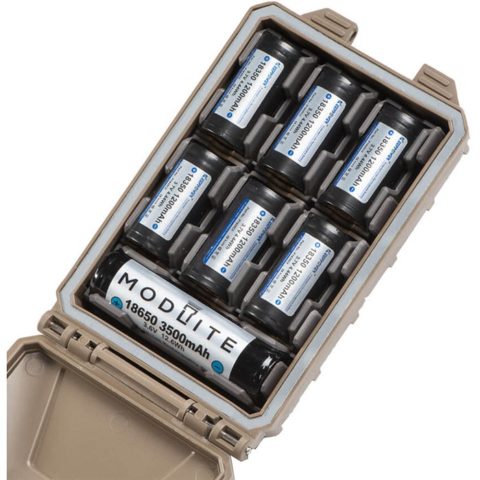 Cuando combines los inserts adicionales del Modular Insert Pak con los que vienen con el CellVault-5M, las posibilidades son casi infinitas. ¿Necesitas usar diez CR123? ¡Puedes hacerlo! ¿Qué tal cuatro 18650 y dos CR123? ¡Así es! También puedes mantener baterías preparadas fuera del CellVault-5M y cambiarlas rápidamente dentro del estuche para adaptarlas a tu misión.