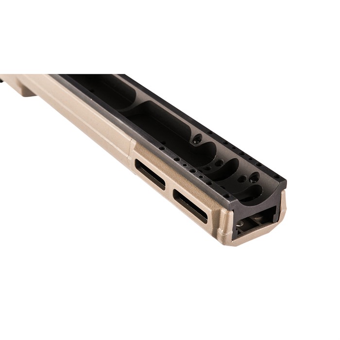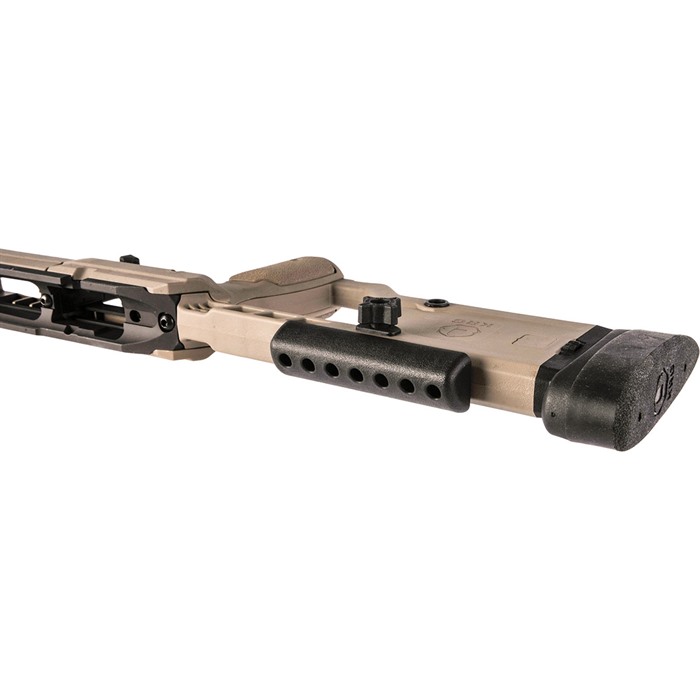 Además, disfrutarás de todos los beneficios estándar de un chasis, como el uso de cargadores AICS, una variedad de puntos de montaje para correas, stops de barrera, etc., y un lecho de bloque de aluminio para la acción, todo sin tener que vender un riñón para pagar el precio de entrada.