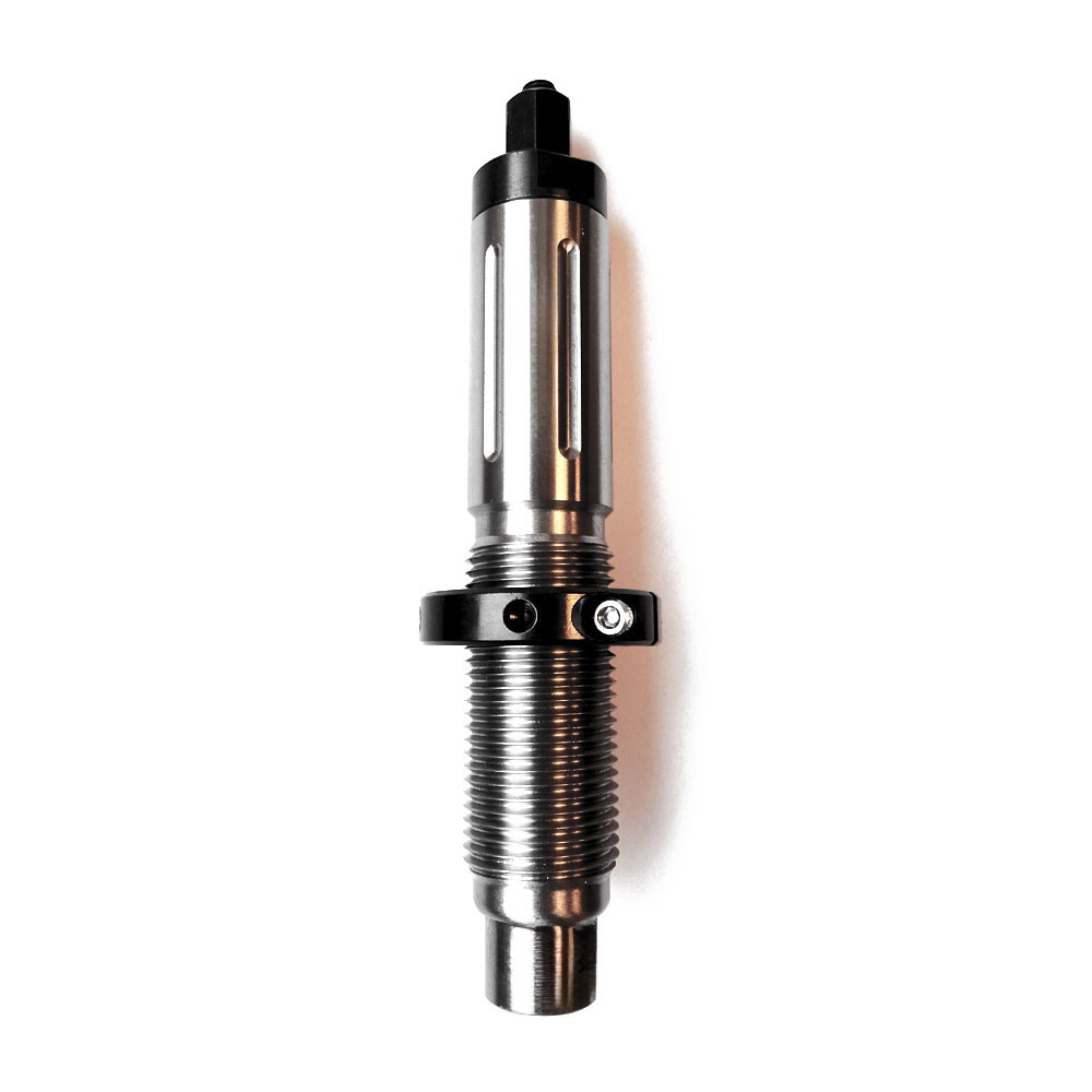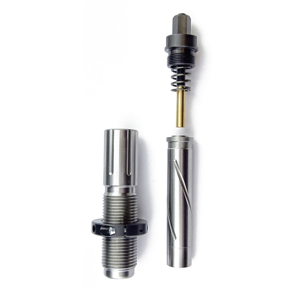 Gracias a la guía de sleeve que está modelada como la cámara del cartucho, el casquillo del cartucho recibirá una perfecta guía axial durante la operación de asentado. Además, la bala será guiada en el mismo proceso, lo que asegura una perfecta concentricidad.