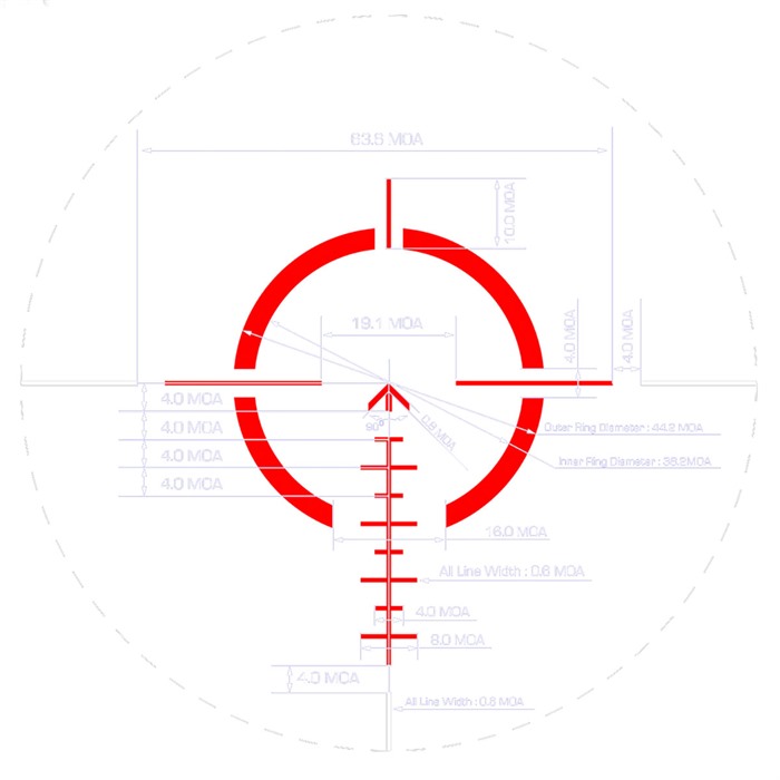 La retícula Trident del Trihawk es ideal para una rápida adquisición a corta distancia, mientras que también proporciona la capacidad para compromisos a media distancia utilizando un BDC de 5.56/.308 o una escala MOA. Puedes elegir entre la iluminación de retícula grabada en vidrio en rojo o verde con la función "Shake ‘N Wake".