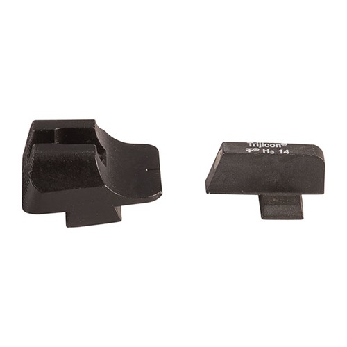 Used by numerous IDPA and USPSA National champions, as well as law enforcement professionals, these streamlined, steel sights are built for fast target acquisition. A variety of front and rear sight configurations include self-illuminating Tritium inserts. Designed to fit factory dovetails. Ramped Rear Sights have a non-serrated face Drift-adjustable for windage, with a locking setscrew to hold the setting. Tactical rear sight features a unique Wave Profile contour with concave corners for an extra wide field-of-view and smooth, no-snag removal from the holster. U-shaped notch has gently radiused corners to help direct the eye quickly to the front sight acquisition. Rear notch is .150" wide and front sight is .125" wide by .215" tall.