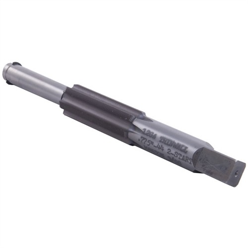 El tap y el reamer están fabricados con acero de alta velocidad y tienen un acabado de precisión. Ambos utilizan los mismos casquillos piloto intercambiables. El reamer cuenta con un alivio en el extremo mejorado que proporciona un corte más rápido. Los casquillos piloto están disponibles en incrementos de diámetro de .001" y miden 2" de largo para una alineación precisa del cañón.