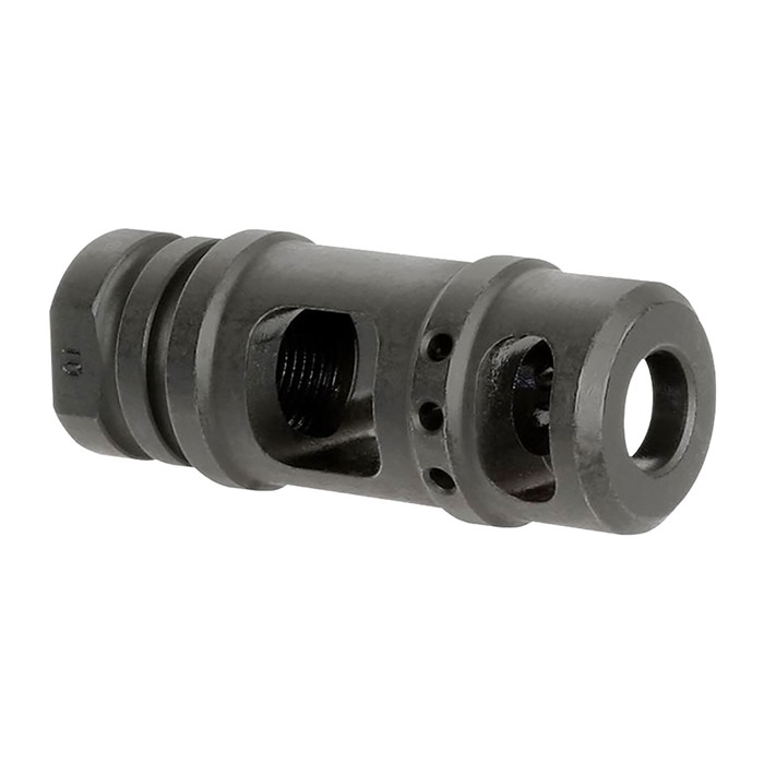Large Two Chamber Muzzle Brakes designed to support the Marlin and Henry Lever Guns! Large two chamber design reduces muzzle climb For use up to .357 caliber firearms Constructed from tool steel with a phosphate finish 5/8-24 threads MI-MB10: .410"" diameter hole, for use with .357 Caliber Firearms MI-MB11: .500"" diameter hole, for use with 45-70 Caliber Firearms Includes new crush washer Weight 4oz 100% made in the U.S.A. *Midwest Industries is NOT responsible for installation and usage of incorrect muzzle devices on firearms* *Please consult certified gunsmith to determine correct threads and hole diameter of muzzle device needed*