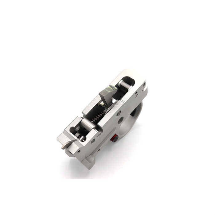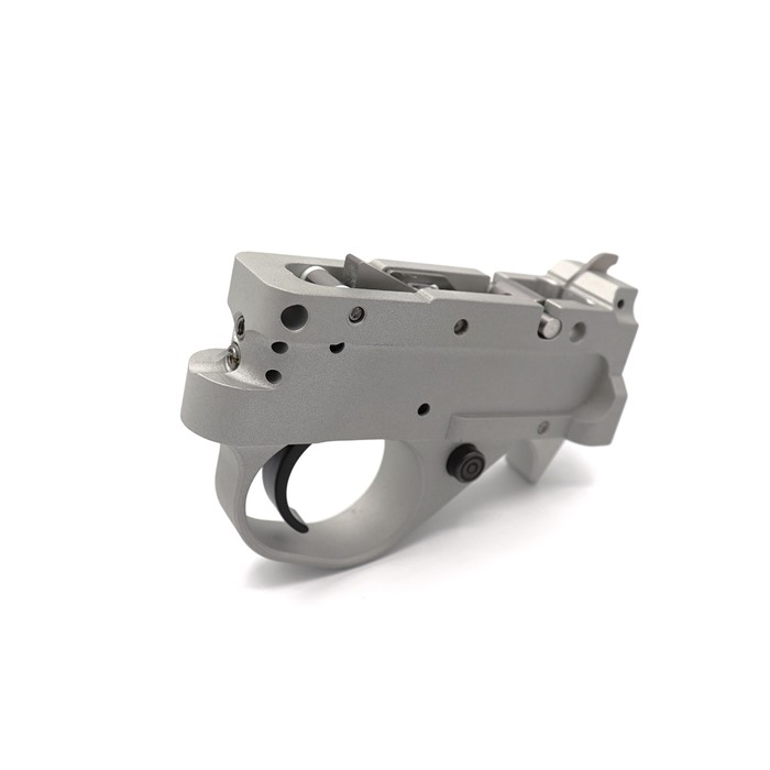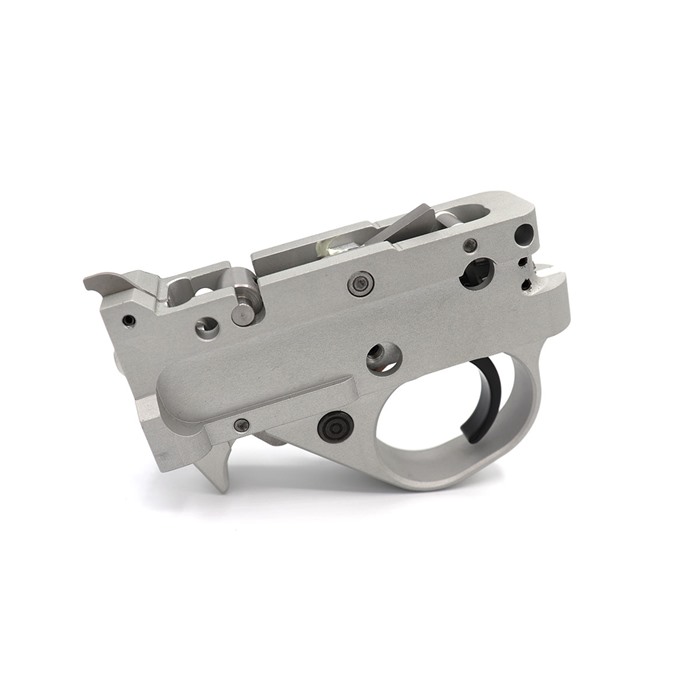 La guarda de gatillo KIDD está mecanizada CNC a partir de aluminio billet 6061 T6. Cada ensamblaje incluye partes internas de acero para herramientas que son también mecanizadas CNC y cortadas por un wire EDM. Todos los resortes son fabricados por un aficionado al .22 y cliente de KIDD, Murphy & Read Springs. Ensamblamos cada gatillo en el taller KIDD, empleando el control de calidad más estricto, sabiendo que nuestra reputación depende de cada gatillo.