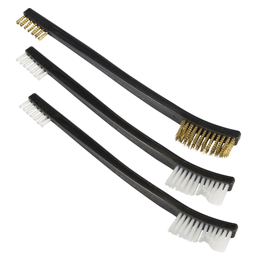 Las cerdas de nylon son duraderas y no dañarán el acabado de tu arma, mientras que las cerdas de bronce son perfectas para eliminar residuos difíciles. Además, el mango de plástico proporciona un alcance y flexibilidad máximos para facilitar la limpieza.