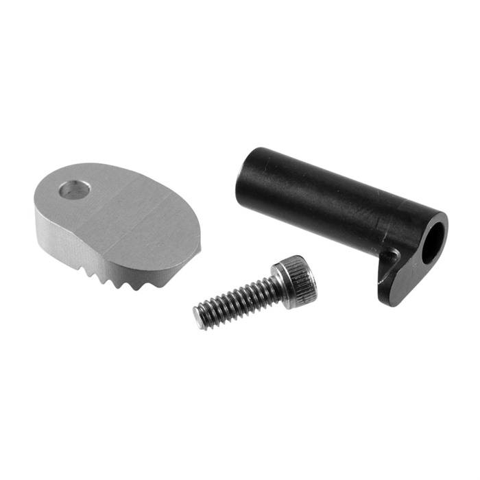 At a glance: Taller, wider magazine release button - great for juniors or shooters with smaller hands Unique paddle design is positionable by the user for a custom fit Textured button offers no-slip grip in any condition; available in black or silver The SW22® Victory™ is a popular rimfire pistol for Rimfire Challenge, Steel Challenge and other shooting sports competitions, and is great for beginner and junior shooters. But for young shooters, or other shooters with smaller hands, reaching the magazine release button while shooting can be a challenge. Even shooters with larger hands often struggle to easily and consistently release the magazine when adding thicker SW22® grips to their Smith & Wesson Victory™ pistol. The TANDEMKROSS "Titan" Extended Magazine Release for SW22® Victory™ is a simple, drop-in replacement for the factory magazine release that offers significantly more surface area and height to make magazine changes easy - ideal for competition shooters! The extended magazine release features a unique, paddle button to extend the magazine release not only out and away from the gun, but also back toward the shooter. The paddle is textured for a no-slip grip in any condition, and can be positioned by the user for a customized grip. The magazine release button is available in black or silver for further customization. Stop fumbling for your magazine release & make faster, more consistent magazine changes with the TANDEMKROSS "Titan" Extended Magazine Release for SW22® Victory™.