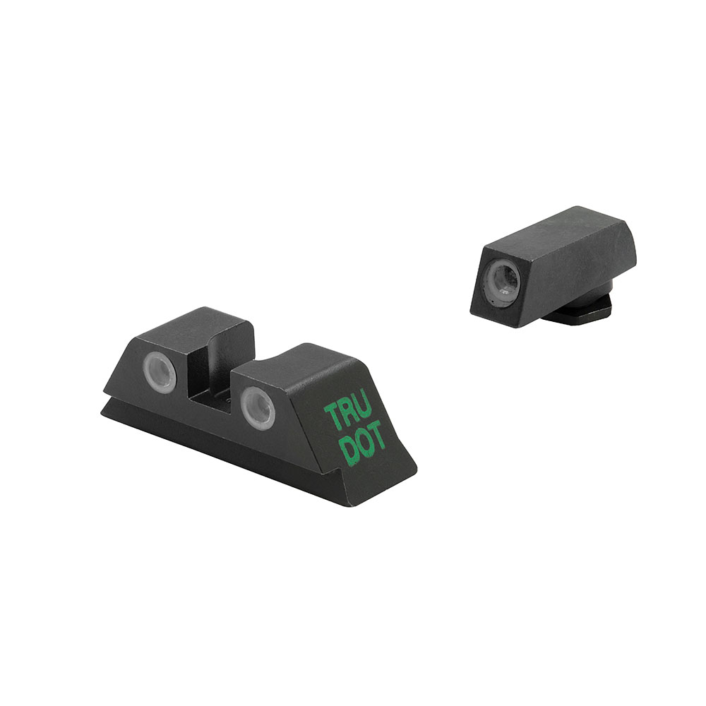 Los modelos TRU-DOT® ofrecen un sistema de puntería para pistolas que mejora la puntería instintiva rápida sin necesidad de transición entre el uso diurno y nocturno. Tanto de día como de noche, la referencia de puntería del tirador son tres puntos sólidos, idénticos en apariencia y ubicación bajo todas las condiciones de luz.