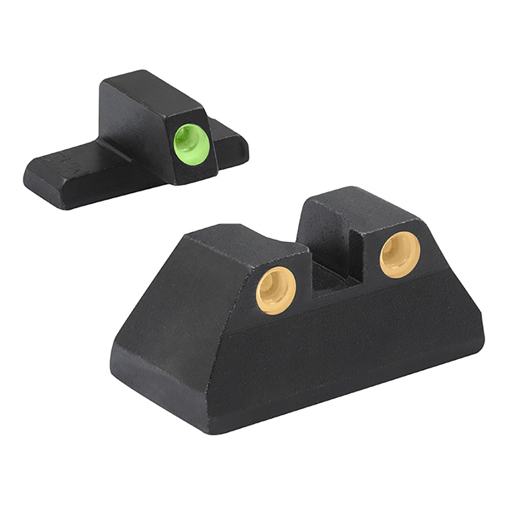 Meprolight® responde a las necesidades de los usuarios; nuestros modelos TRU-DOT® están disponibles en varios colores de puntos de tritio en la mira trasera: Verde, Amarillo, Naranja (amarillo o naranja solo para modelos seleccionados) y un punto de tritio verde en la mira delantera.