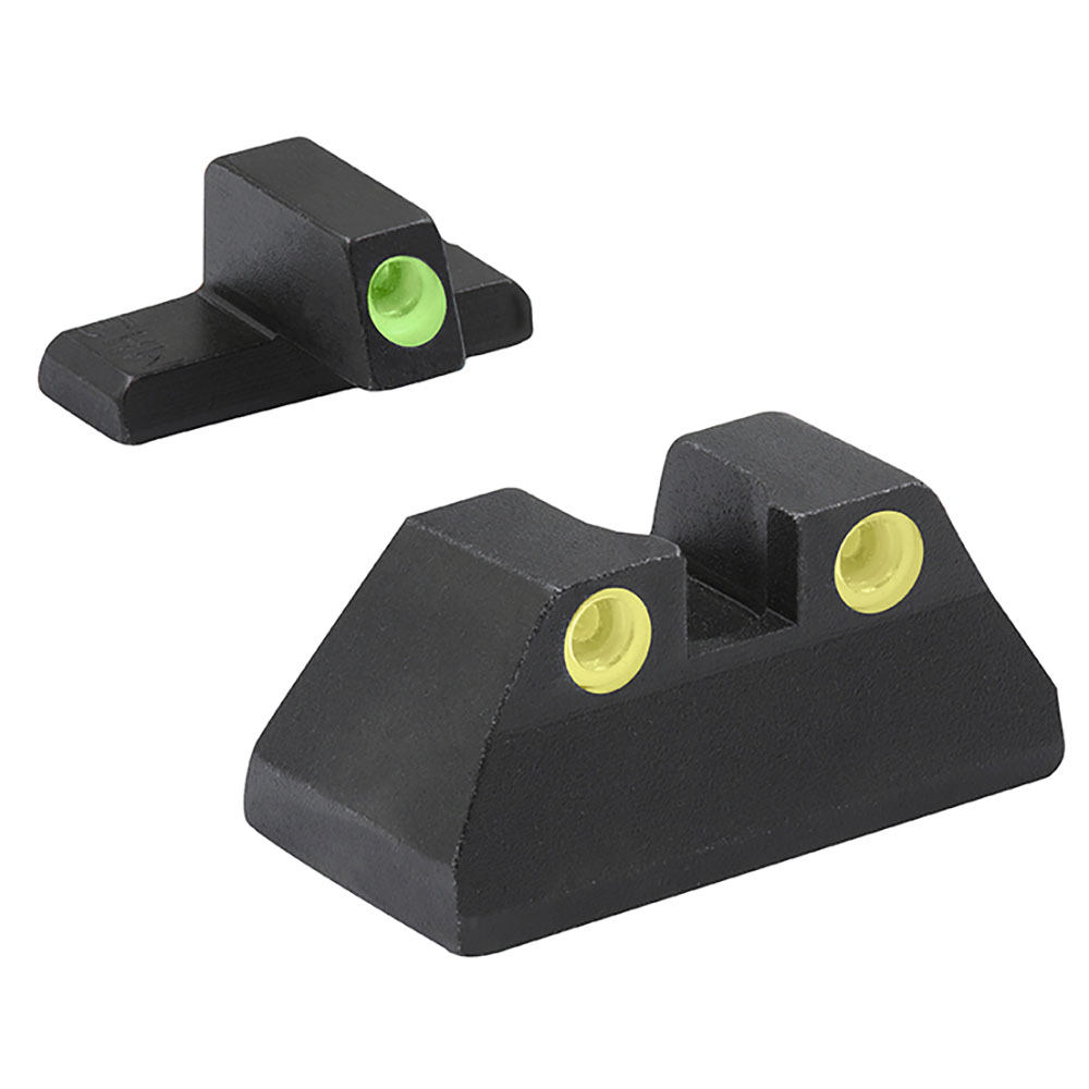 Meprolight® responde a las necesidades de los usuarios, nuestros modelos TRU-DOT® están disponibles en varios colores de puntos de tritio en la mira trasera: Verde, Amarillo, Naranja (Amarillo o Naranja solo para modelos seleccionados) y punto de tritio verde en la mira delantera.