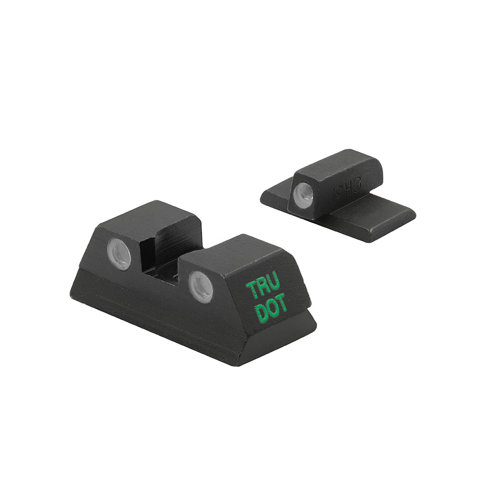 Los modelos TRU-DOT® ofrecen un sistema de miras para pistolas que mejora la puntería instintiva rápida, sin necesidad de transición entre el uso diurno y nocturno. Tanto de día como de noche, la referencia de puntería del tirador son tres puntos sólidos, idénticos en apariencia y ubicación bajo todas las condiciones de luz.