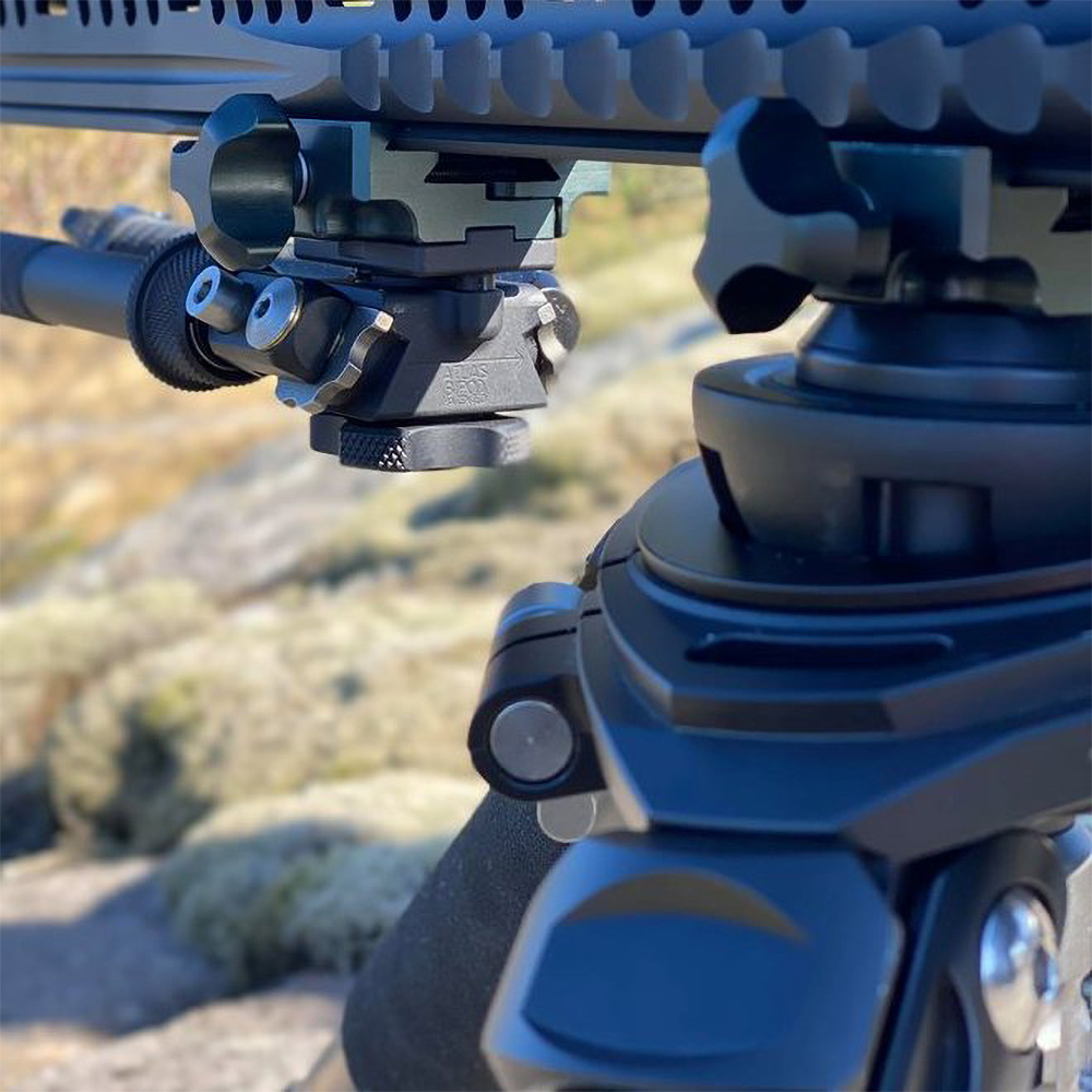 - Coloca el adaptador "Loke" en la base del bípode o trípode, alineando las ranuras con el sistema Picatinny/Arca del rifle.