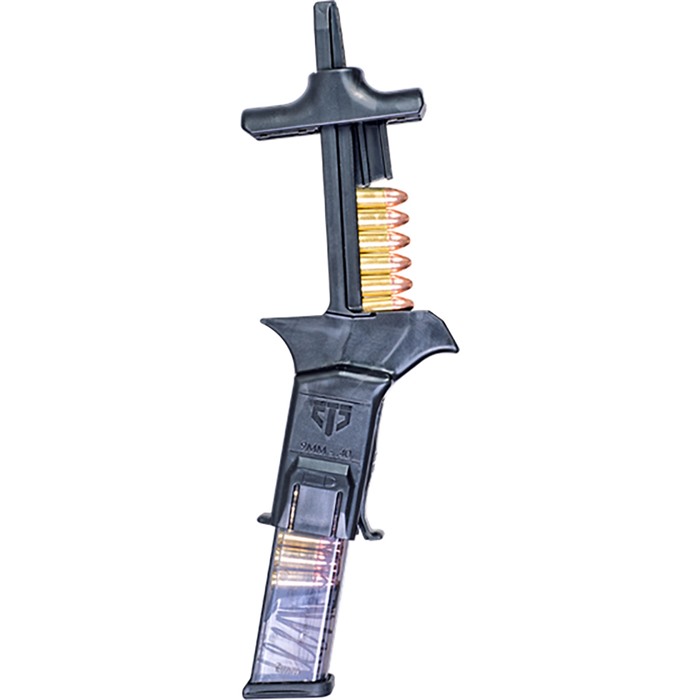 El Universal Pistol Magazine Loader es un cargador de polímero que te ayuda a cargar cargadores de 9mm y .40 S&W. Deja de luchar con cartuchos caídos y evita el dolor en los pulgares después de un día completo en el campo de tiro.