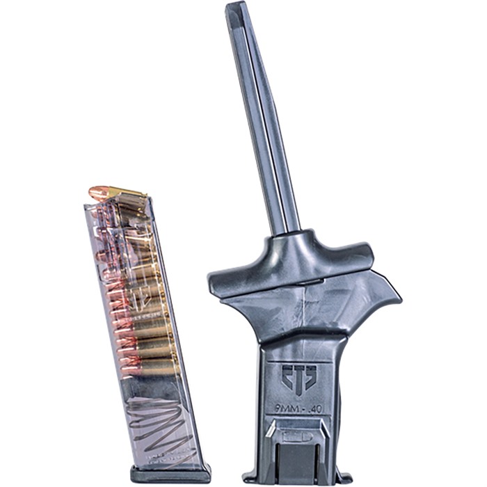 El Universal Pistol Magazine Loader está diseñado para usarse en todas las condiciones y no se volverá blando o quebradizo en calor o frío. Pasa menos tiempo cargando cargadores y más tiempo disparando con el Universal Pistol Magazine Loader. Funciona con cargadores de 9mm y .40 S&W de la mayoría de los fabricantes.