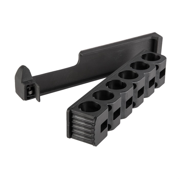 El Universal Shotgun Shell Carrier también presenta recortes de acceso que permiten a los propietarios de escopetas acceder a los pasadores críticos del receptor para el desensamble. Este portacartuchos está construido para funcionar tanto con acciones de bombeo como con acciones semiautomáticas.