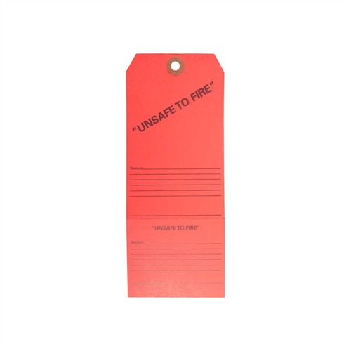 Las etiquetas de papel en un brillante color rojo con letras negras indican claramente que un arma es insegura para disparar. Son perfectas para armas que simplemente no se pueden reparar, cuando las piezas no están disponibles, o cuando un cliente te dice que es el arma de su abuelo y quiere colgarla sobre la chimenea.
