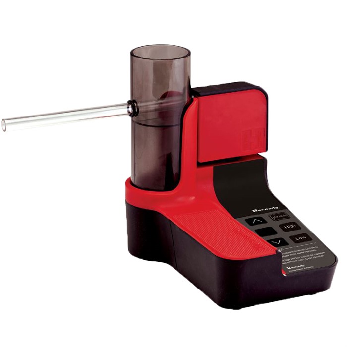 Los ajustes altos, bajos y variables te permiten ajustar el funcionamiento del trickler para diferentes tipos de pólvora. Cada Hornady Vibratory Trickler cuenta con botones LED iluminados para una fácil selección en condiciones de poca luz, y la unidad funciona con dos baterías AAA.