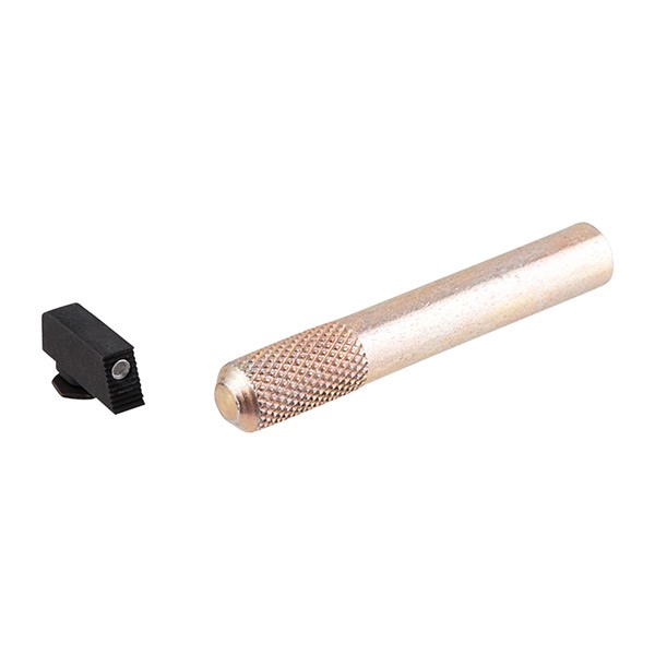- Retira la Mira Vieja: Usa la herramienta de empuje de miras para retirar cuidadosamente la mira delantera existente de la Glock® 42/43.