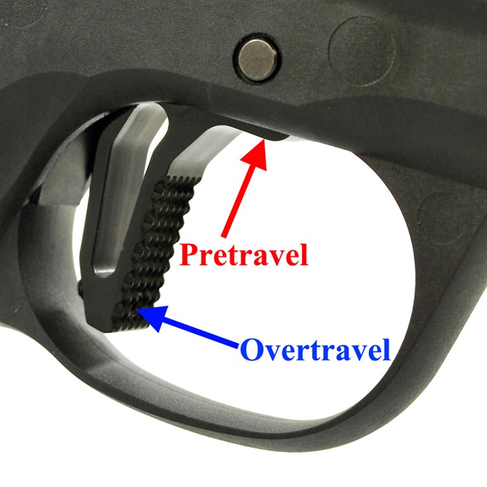 Este diseño permite al tirador tirar directamente hacia atrás, brindando la capacidad de saber si están tirando demasiado hacia la izquierda o hacia la derecha. La cara plana también permite al operador colocar su dedo más abajo en el gatillo, aumentando la palanca y permitiendo aprovechar al máximo los pesos de tiro más bajos. La amplia cara distribuye el peso del tirón del gatillo, lo que también resulta en una percepción de un peso de tirón más bajo.