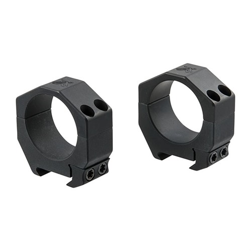 Vortex Optics starts with certified USA 7075 T6 billet aluminum and hold it to an extremely tight tolerance of .0005 using their precision Computer Numeric Controlled (CNC) mill. These Precision Matched Rings are kept in pairs throughout the manufacturing process - ensuring perfection from one set to another. These Vortex rings are then serialized, vibratory tumbled, hand-bead blasted and finished off with a Type III hard coat anodize.