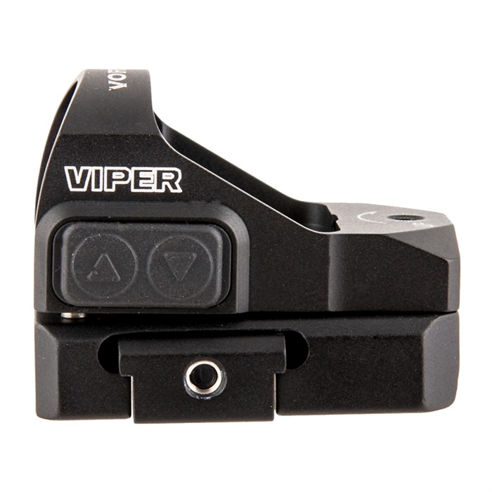 The Viper Red Dot's super-low mounting height makes it the perfect solution for handguns with cutout slides. The Viper gives shooters the simplicity and speed advantage of a dot sight, while co-witnessing with stock iron sights.