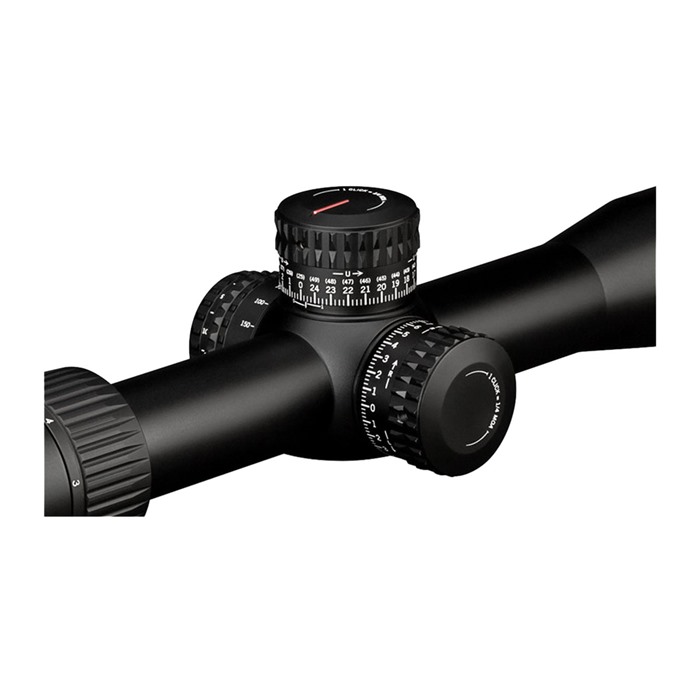 - Retícula iluminada EBR-2C MRAD en el primer plano focal, con puntos de retención detallados e intuitivos.